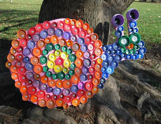Que fofo, pessoal! Um caramujo de tampinhas. Muito lindinho e criativo. Dá muita vontade de fazer um bem grandão também e encantar a todos com uma arte fofinha como essa!