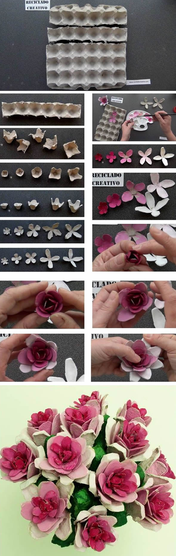 Você pode criar guirlandas e moldurar lindas com flores feitas de caixas de ovos. É uma ideia maravilhosa para incrementar a decoração de Dia das Mães.