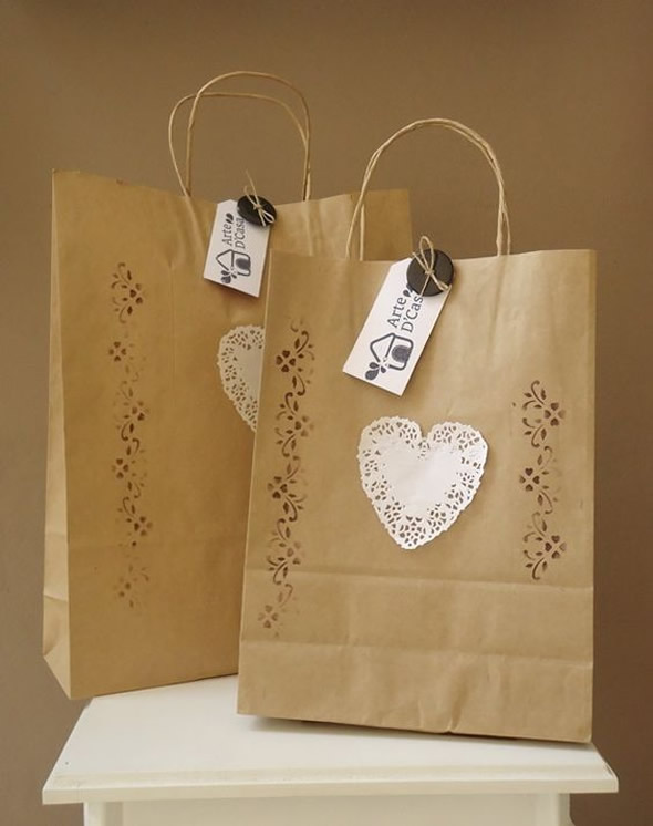 Outra ideia super legal que você pode utilizar para deixar suas sacolinhas de papel bem fofas e lindas.