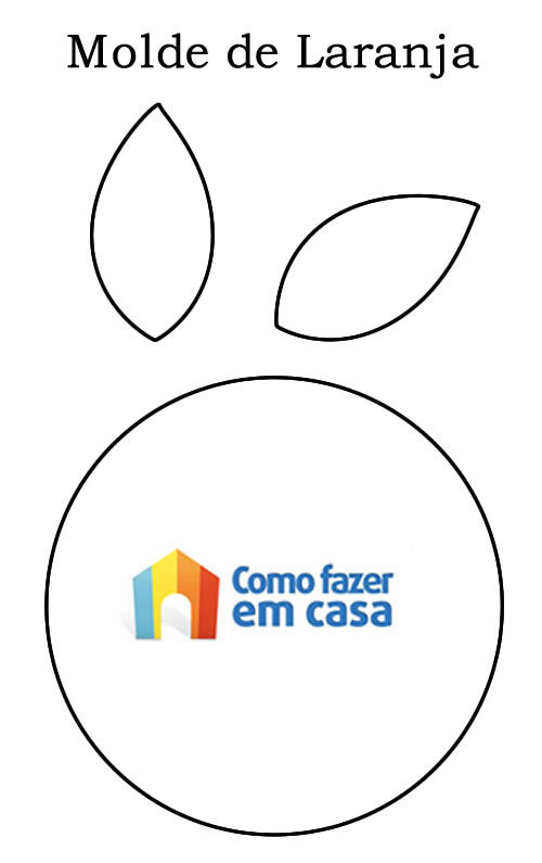 Primeiro transfira os moldes do papel para o feltro. Corte dois círculos no feltro laranja e as duas folhinhas no feltro verde. Logo em seguida, já anexe as folhas e costure-as no feltro laranjinha que servirá como base.