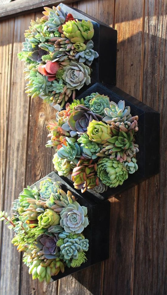Veja como os exemplos a seguir ficaram lindos! São arranjos de mini suculentas, ao passo que também são lindos jardins verticais. Que coisa mais linda!