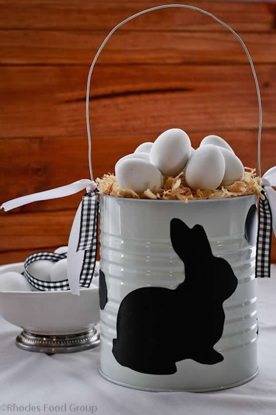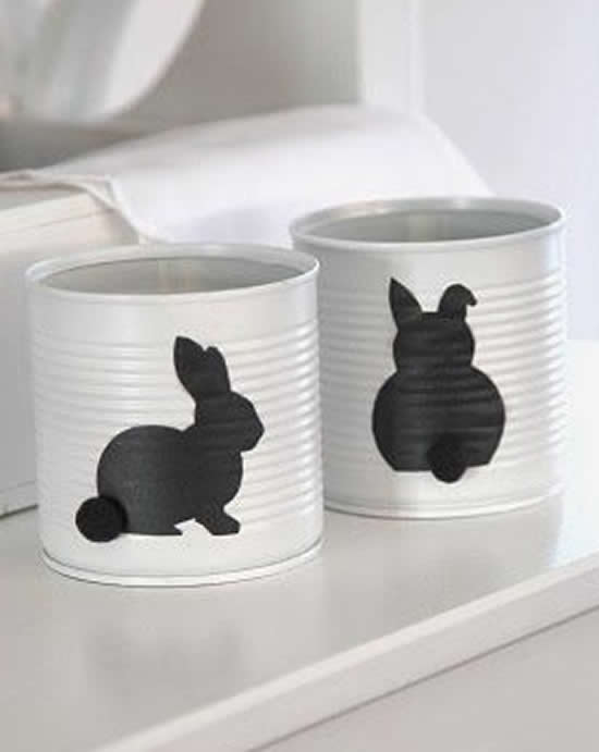 Fica lindo demais poder improvisar na criação de artigos de Páscoa com latas. Personalize, crie coelhinhos e faça decorações bem legais nesse sentido também!