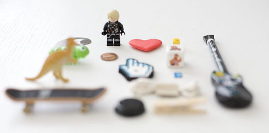 A segunda etapa da brincadeira é ainda mais divertida e criativa. Pegue os objetos que você selecionou e faça com que eles possam criar uma estorinha com os itens. Trouxemos a estorinha que rolou nesta brincadeira registrada na foto: “Esta é uma história de uma minhoca. Um minhoca chamada Matilde. Matilde ama a música. Ele ama tanto que decidiu começar uma banda. Matilde ficou famosa. Ela fez shows pelo país. Quando chegou em casa fez uma grande festa com os amigos. Matilde disse: ‘Refrigerantes pata todos!”