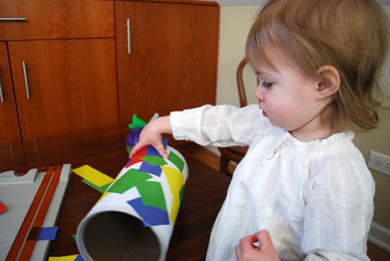 Para que o projeto fique com a cara do pimpolho, você pode deixar com que ele mesmo cole os adesivos coloridos que você cortou.