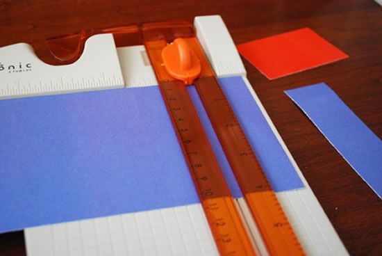 Comece a cortar aleatoriamente seus adesivos coloridos obtidos através do template impresso nos papeis autocolantes. O tutorial usou uma mesa de corte, mas você pode utilizar a tesoura ou o estilete mesmo. Lembre-se de manter os objetos pontiagudos citados longe das crianças!
