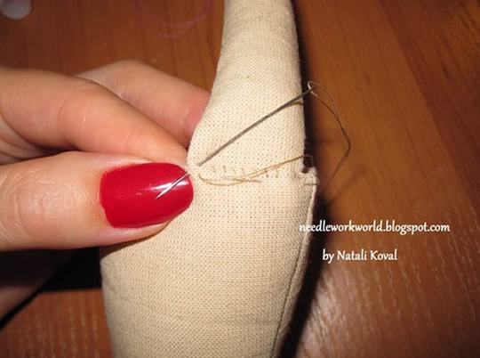 A cabeça deve ficar dessa forma. É só costurar da mesma forma que você está vendo na imagem a seguir.