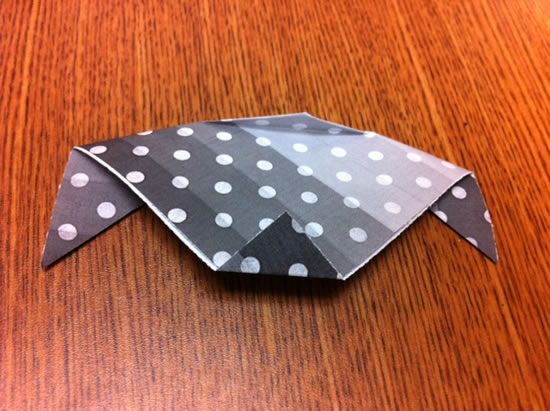 Agora faça as orelhinhas, dobrando as extremidades para baixo.