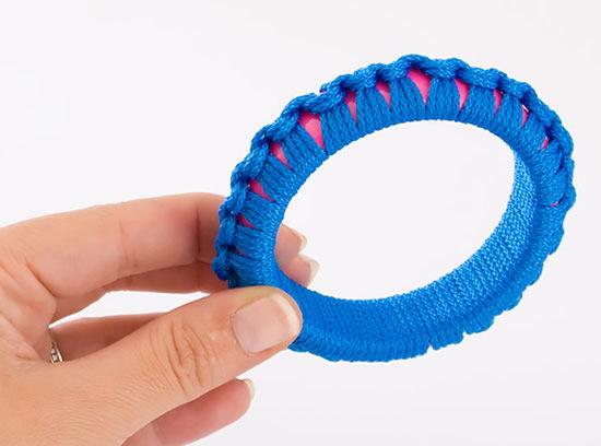 Repita os passos anteriores até preencher toda a pulseira com o ponto em macramê. Chegando ao fim, você irá puxar apenas um fio para poder arrematar.