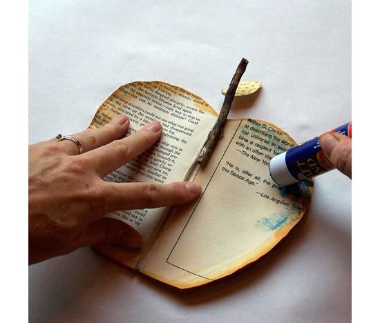 Faça isto até ter a sua metade de maçã com o miolo de páginas do livro velho.