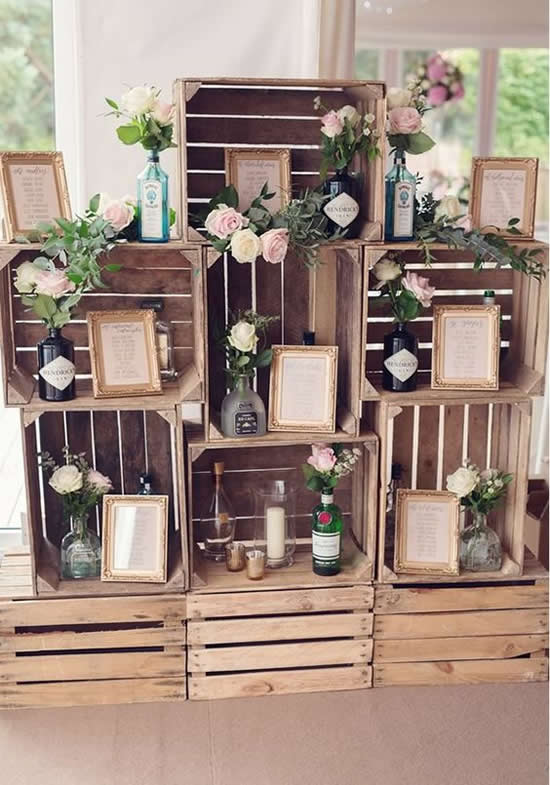 Faça também e a decoração do casório vai ficar linda demais. Principalmente se você caprichar na confecção dos artigos decorativos com caixotes de madeira.
