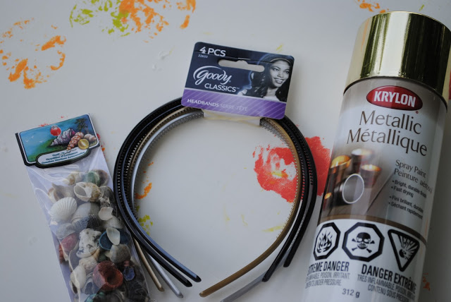 Comece pintando todas as conchas e a tiara com a tinta spray dourada (ou a cor que você preferir). Deixe secar completamente.