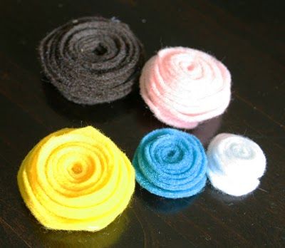 Agora comece a enrolar o feltro para ir compondo o formato da sua flor. Vá enrolando até chegar no círculo de feltro central.