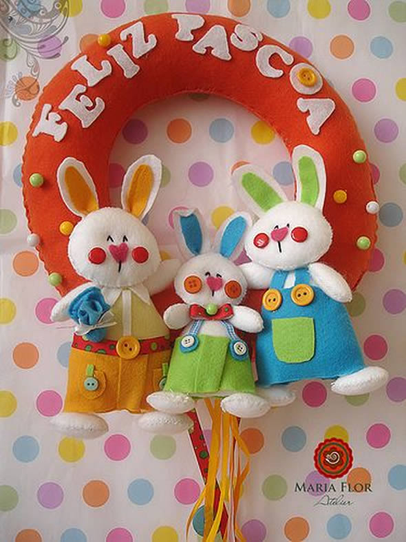 Outro lindo artesanato de Páscoa com tecido! Essa guirlanda pode ser tudo que você estava buscando para criar algo legal e receber seus convidados de uma maneira bem especial. Um artesanato muito fofo do flickr de Alessandra Pessoa.