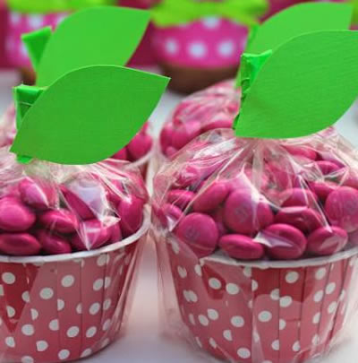 – Forminhas com docinhos. Forminhas de cupcakes podem se tornam lindas lembrancinhas para a mesa do parabéns, olha só! O recheio delas podem ser MM’s, jujubas ou confetes coloridos. Para finalizar a sua lembrancinha é só embalar e colocar algum adereço feito de papel mesmo, que pode ser de acordo com o tema da festa. Use a sua criatividade.