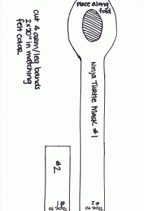 O primeiro passo é fazer o download e imprimir o molde da máscara das Tartarugas Ninja logo abaixo. Esse modelo serve para fazer a máscara de qualquer um dos personagens.