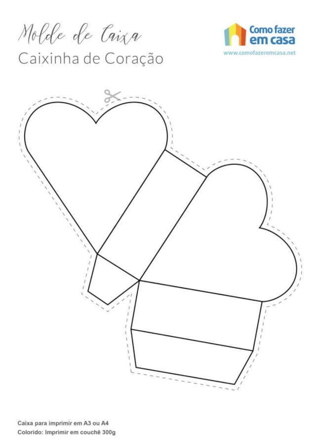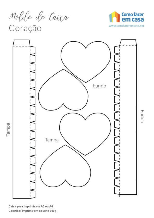 Sem dúvida as caixas de coração são excelentes escolhas para presentear, criar lembrancinhas festivas ou até decorar ambientes. Os moldes aqui estão na cor branca e podem ser impressos para riscar cartolina coloridas, papel kraft e outros.
