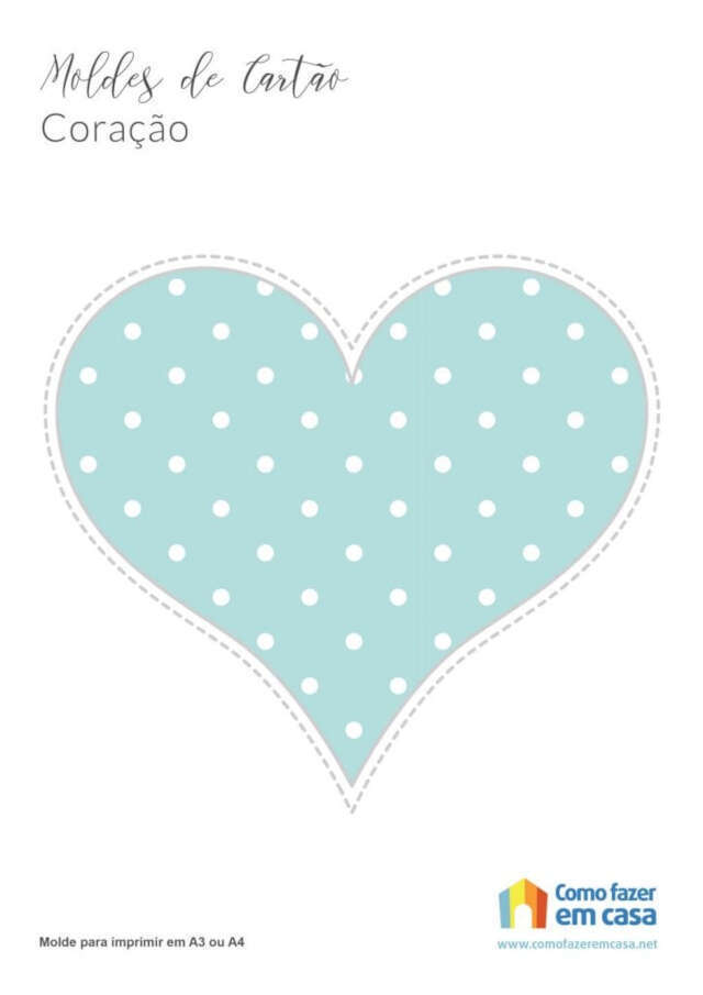 Navegue no post para encontrar o molde de coração, cartão ou caixa em formato de coração e faça sua escolha.