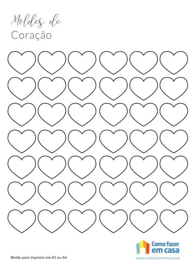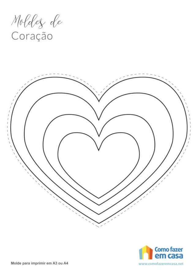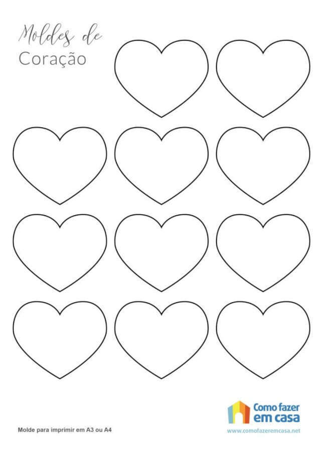 Todos os arquivos aqui neste post estão em formato A4, porém é possível imprimir em folhas maiores como o A3. Pois os moldes de coração para imprimir estão em ótima qualidade.
