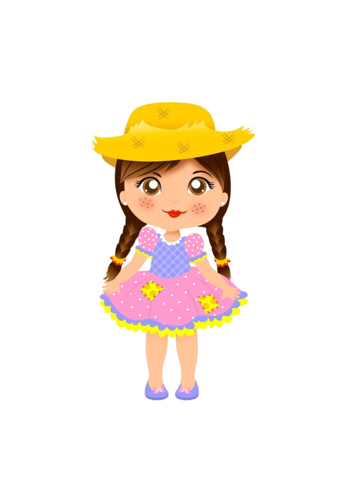 Os moldes para matutos e matutas são versáteis e fáceis de usar. Basta imprimir, recortar ao longo das linhas e montar seguindo as instruções. Muitos incluem opções diferentes – matutos dançando, matutas com cestas de frutas ou até animais típicos como acompanhantes.