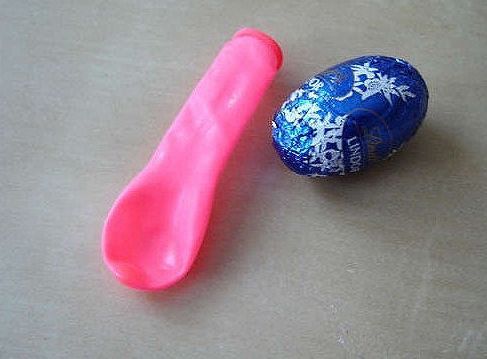 É super simples de criar. Antes de encher a bola, coloque os chocolates: dois ou três já está de bom tamanho. Dê muitas voltas na bola para que ela fique bem preenchida com o barbante.